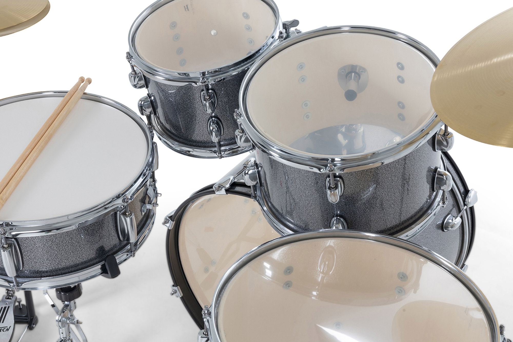 Finisajul Grey Sparkle conferă un aspect vibrant și profesionist, făcând kitul să iasă în evidență. Cu hardware și cinele incluse, acest pachet „all-in-one” îți permite să începi să cânți imediat după despachetare.