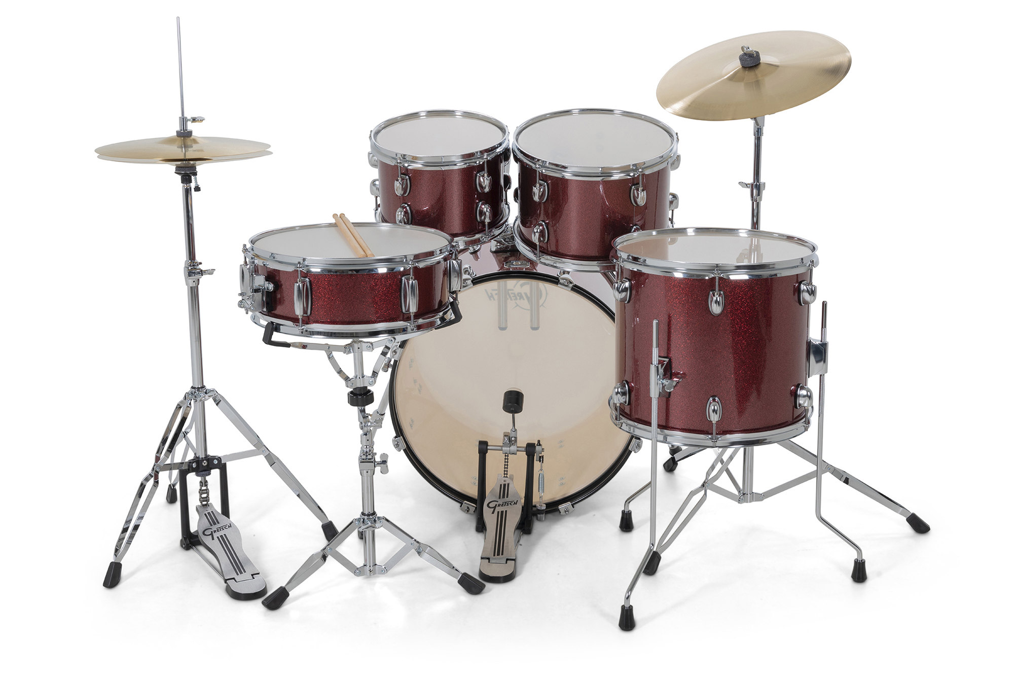Finisajul Ruby Sparkle conferă un aspect vibrant și profesionist, făcând kitul să iasă în evidență. Cu hardware și cinele incluse, acest pachet „all-in-one” îți permite să începi să cânți imediat după despachetare.