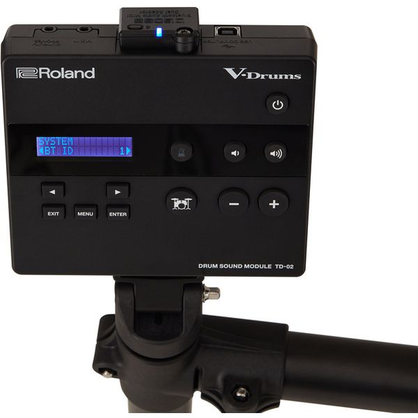 Roland TD-02KV V-Drum - Set de tobe electronice cu suport pentru tobe cu 4 picioare, cabluri și cheie de acordaj pentru tobe.