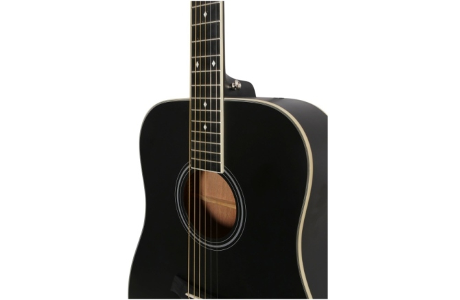 Arrow Silver D BLK Black ARRSDBLK - Căutați o chitară perfectă pentru începători? Chitara Arrow Silver este prevăzută cu un top din molid, spate și laterale din mahon și un gât din mahon si o acțiune foarte comodă ce sporeste confortul în sesiunile intense de studiu.