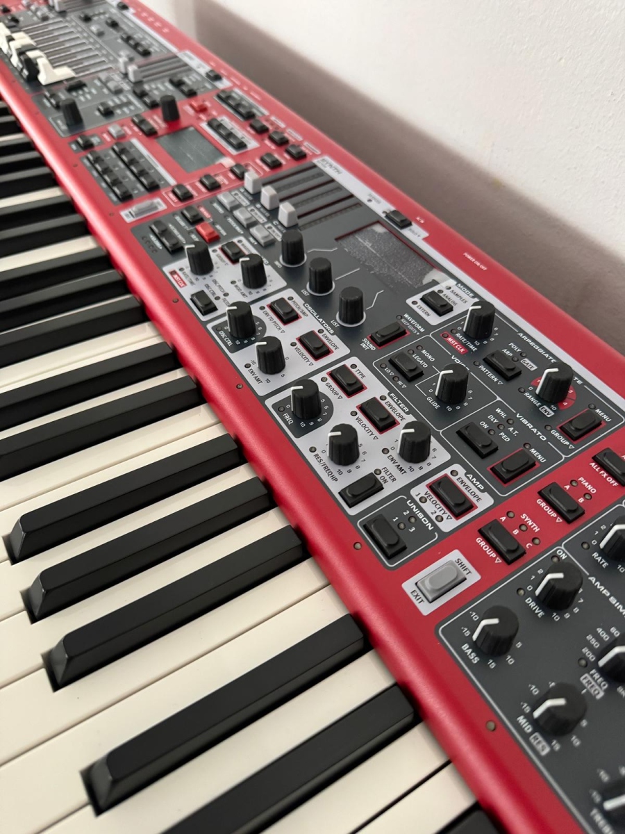 Clavia Nord Stage 4 73 - Pian digital, sitetizator, orgă cu un design nou de panou cu fadere LED dedicate pentru fiecare Layer, oferind o imagine de ansamblu excepțională și flexibilitate atunci când creați sunete și cântați live. Noua bibliotecă de presetări este plină cu sunete inspirate de pian, Synth și orgă, gata de utilizare, pentru crearea rapidă și fluidă a patch-urilor. Layer Scene vă permite să comutați fără probleme între două configurații de sunet diferite prin atingerea unui buton. Adăugând o nouă secțiune puternică de efecte cuplată cu opțiuni versatile pentru pedale și o claviatură premium cu triplu senzor, Nord Stage 4 oferă un nou nivel de expresie muzicală.