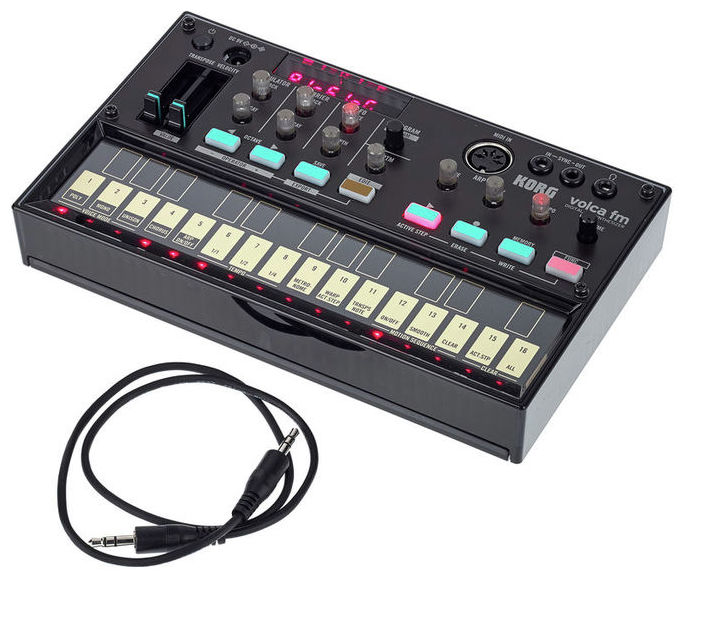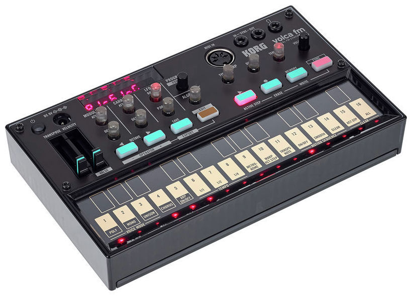 Korg Volca FM - mini-sintetizator analogic, Digital FM, cu polifonie de 3 voci. Acesta poate reproduce complet motorul de sunet al unui sintetizator FM classic, fiind perfect compatibil în același timp. Interfața unică volca permite manipularea distinctă a sunetelor FM chiar dacă nu există un nivel de experiență pentru utilizarea sintezei FM. Beneficiază de efect de chorus, Step-Sequencer cu 16 pași (poate fi automatizat), include Warp Active Step, Arpeggiator și Pattern Chain. Oferă intrări/ieșiri sync cu conector mini jack mono, ieșire de căști cu conector mini jack stereo. Alimentat de 6 baterii AA sau prin alimentatorul KA-350 (comercializat separat).