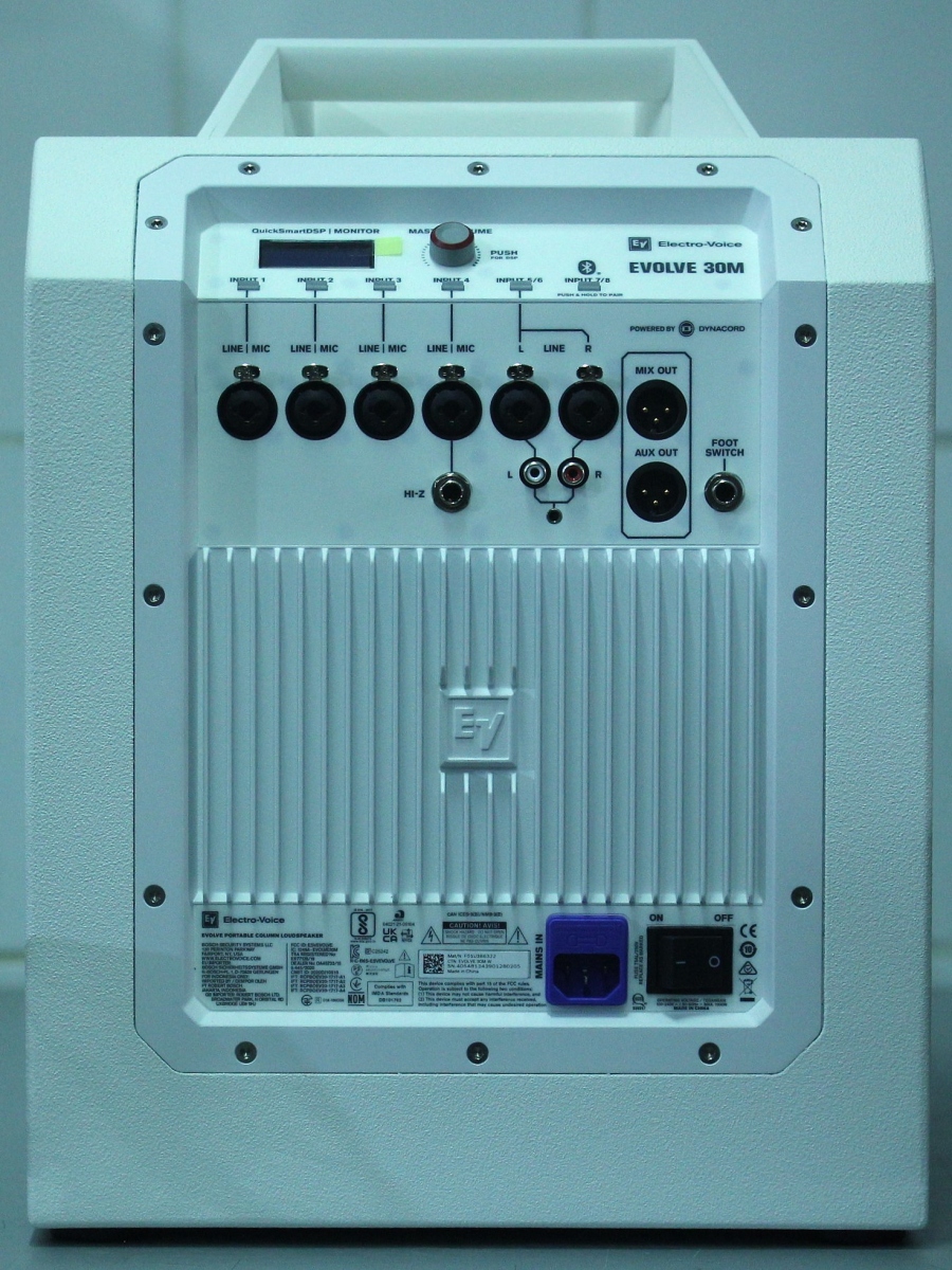 Electro-Voice Evolve Evolve 30M White – Sistem audio activ tip coloană cu Subwoofer de 10”, ce dispune de mixer digital cu opt canale integrat, efecte audio de calitate de studio și control complet prin aplicația QuickSmart Mobile, disponibilă pe iOS și Android.