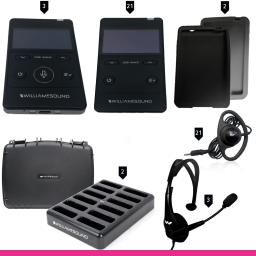 Williams AV 21-Person Portable Digi-Wave Interpretation System (Rechargeable) - Sistem complet pentru interpretare simultană (21 de utilizatori), destinat conferințelor și întâlnirilor cu audiență medie. Include transceivere și receptoare reîncărcabile, oferind distribuție audio wireless și operare portabilă.