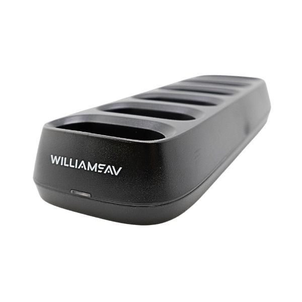 Williams AV CHG 004 Infinium 6-Bay Charger – Stație de încărcare simultană pentru până la 6 receptoare Infinium® BA R1, oferind încărcare rapidă și sigură. Este compatibil doar cu receptoarele aprobate și respectă instrucțiunile de siguranță pentru baterii.