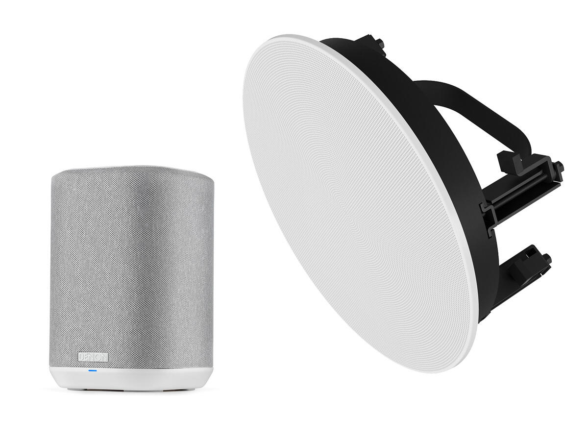 Set Denon Home 150 cu Kit Instalare Gineos One. Setul include difuzorul wireless multiroom Denon Home 150 și kitul Gineos One pentru montaj în tavane și pereți. Este destinat instalărilor profesionale audio în locuințe, oferind
