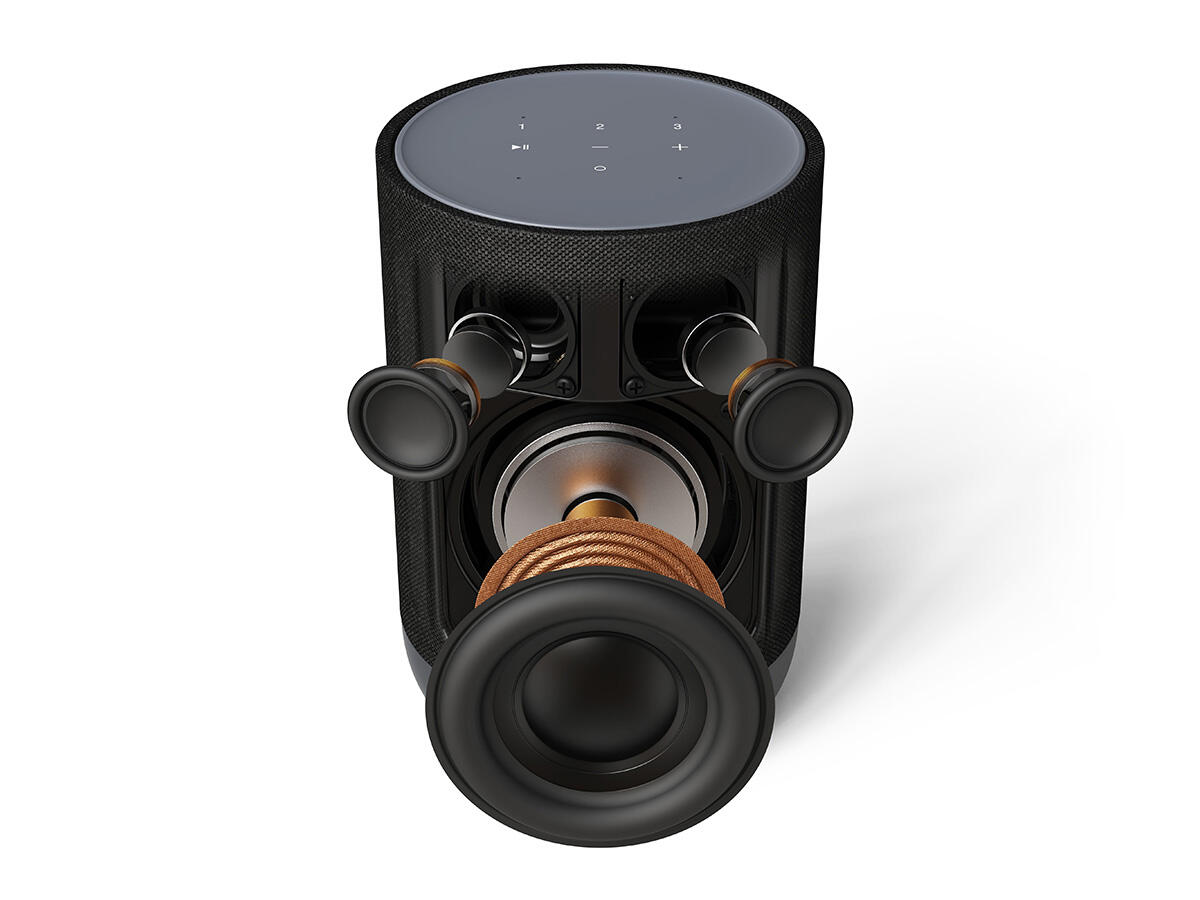 - Permite extinderea sistemului cu mai multe difuzoare, receptoare AV și bare de sunet