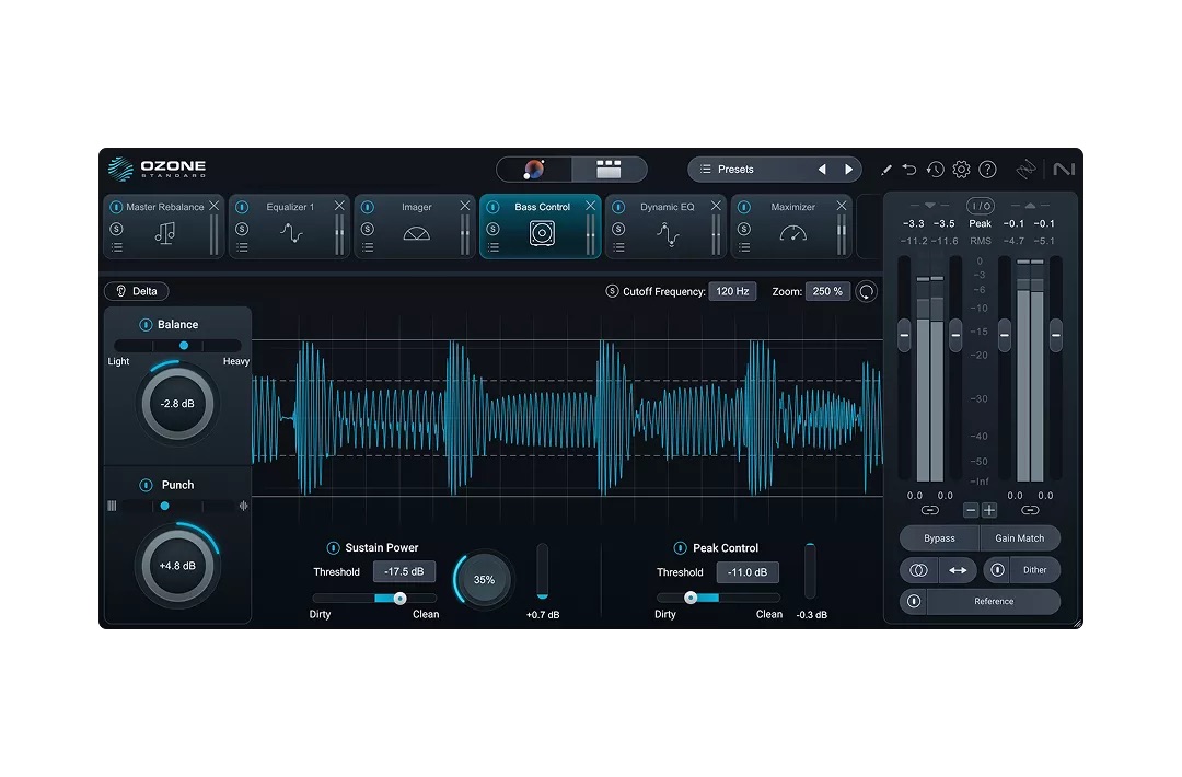 - Generare Inteligentă de Lanțuri: Configurează lanțul de masterizare folosind presetările Ozone din hit-uri actuale, un fișier audio de referință sau ținte generate de iZotope Audiolens.