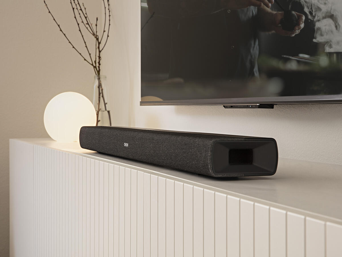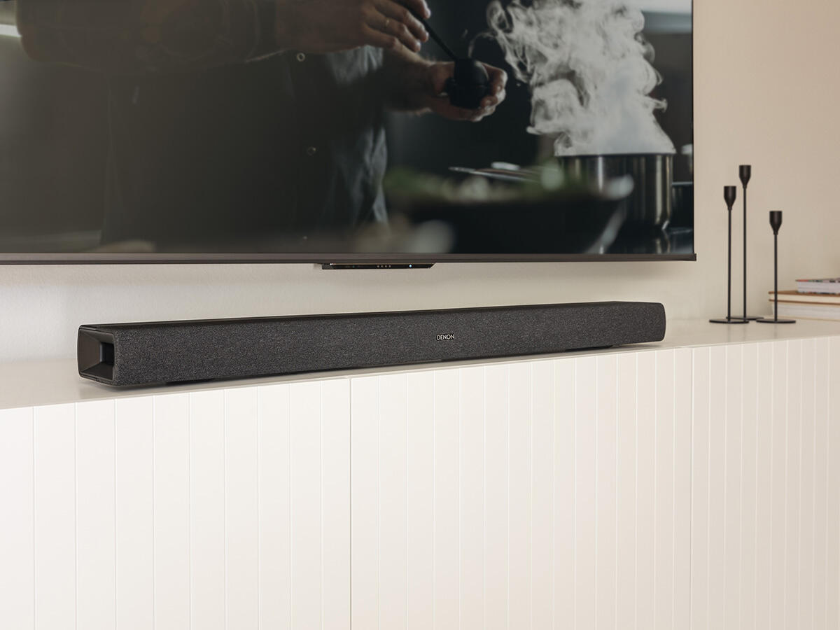 Denon transformă orice televizor într-un centru de divertisment acasă cu DHT-S217. Bara de sunet cu profil redus, montabil pe perete, dispune de două subwoofere integrate cu direcție în jos și tehnologia audio Dolby Atmos 3D pentru a crea o experiență de sunet surround de tip home theater fără un subwoofer separat.