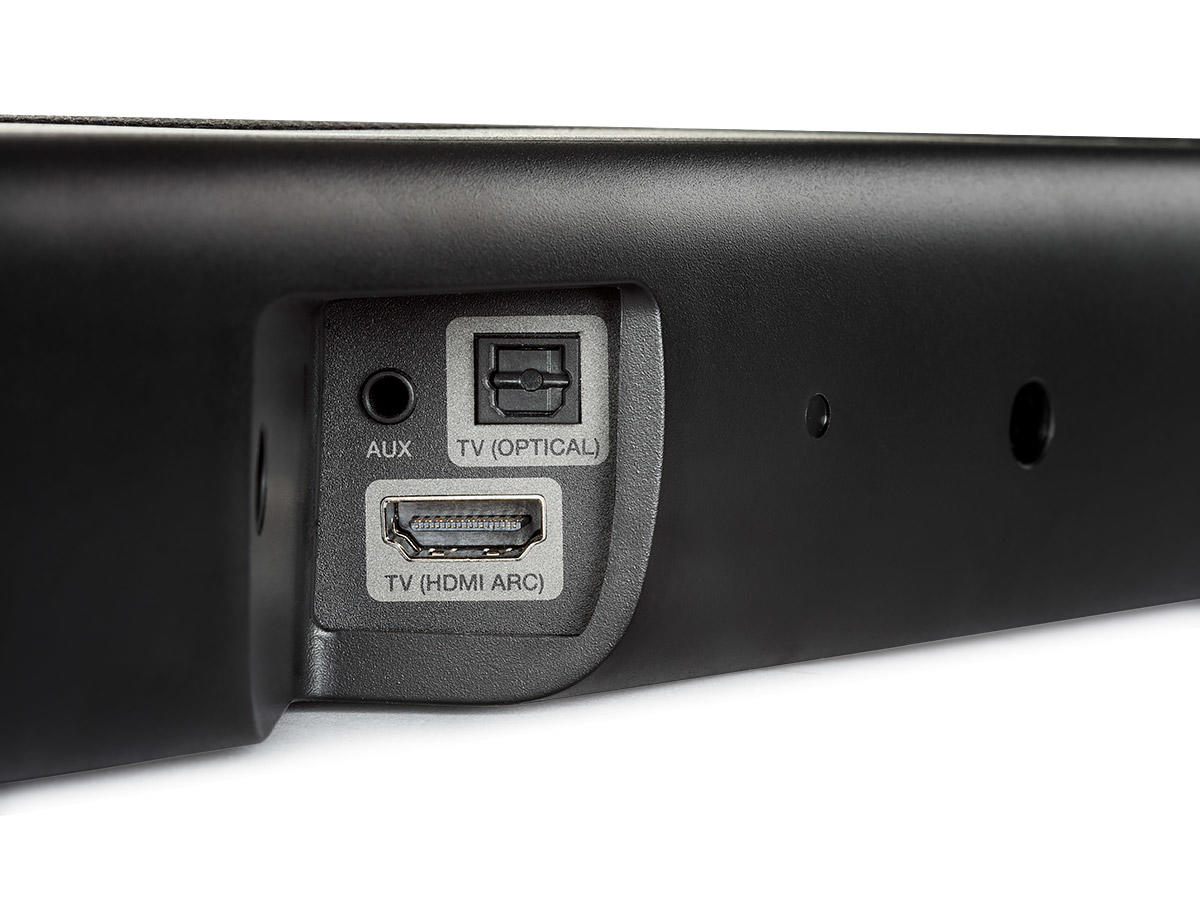- Conexiune simplă prin cablu HDMI (inclus) și ARC (Canal de Întoarcere Audio); telecomanda TV poate controla soundbar-ul; conexiune audio digitală optică disponibilă