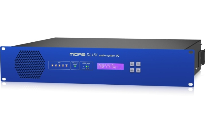 DL151 este un stagebox 2U cu 24 intrări mic/linie, echipat cu preamplificatoare Midas și pași de câte 2.5 dB. Dispune de două porturi AES50 pentru redundanță și se integrează cu consolele digitale Midas PRO și M32 pentru conexiune digitală snake.