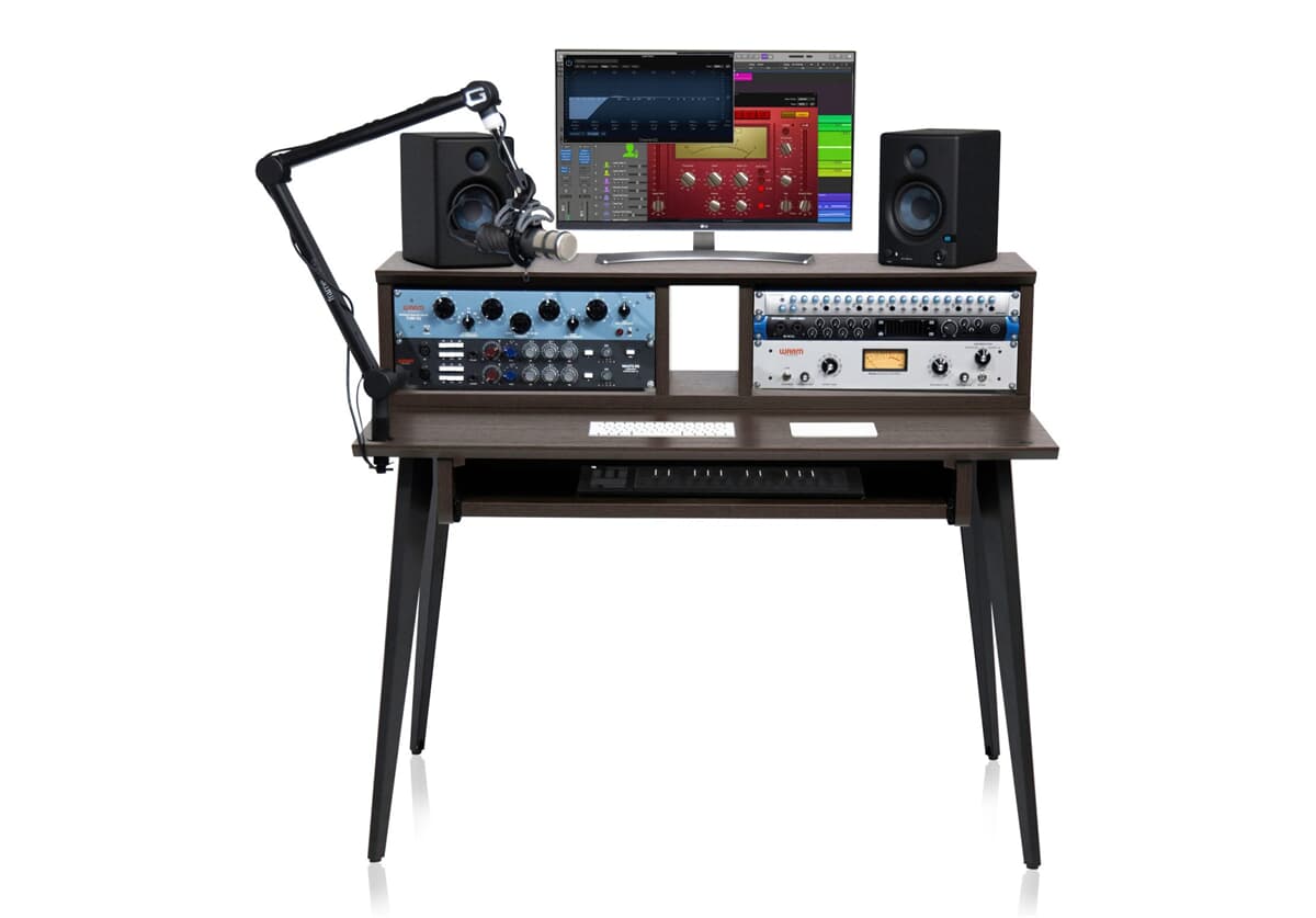 - Designul platformei cu două niveluri de 1”/25 mm grosime se potrivește cu monitoare mici de studio, suprafață de control MIDI, mixer și echipamente audio similare