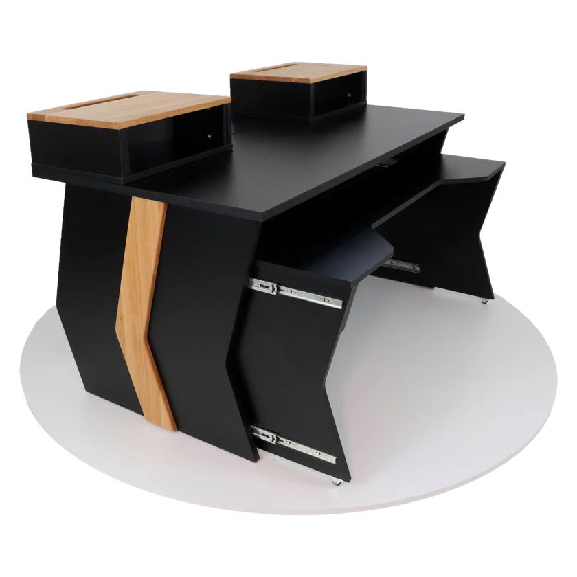 Zaor Miza Flow Two - VARIANTA CU 2 RACK-uri este un birou de studio de înaltă calitate, conceput pentru producția muzicală modernă. Combină flexibilitate excepțională, ergonomie profesională și finisaje premium din lemn masiv, oferind o soluție adaptabilă pentru orice setup de studio.