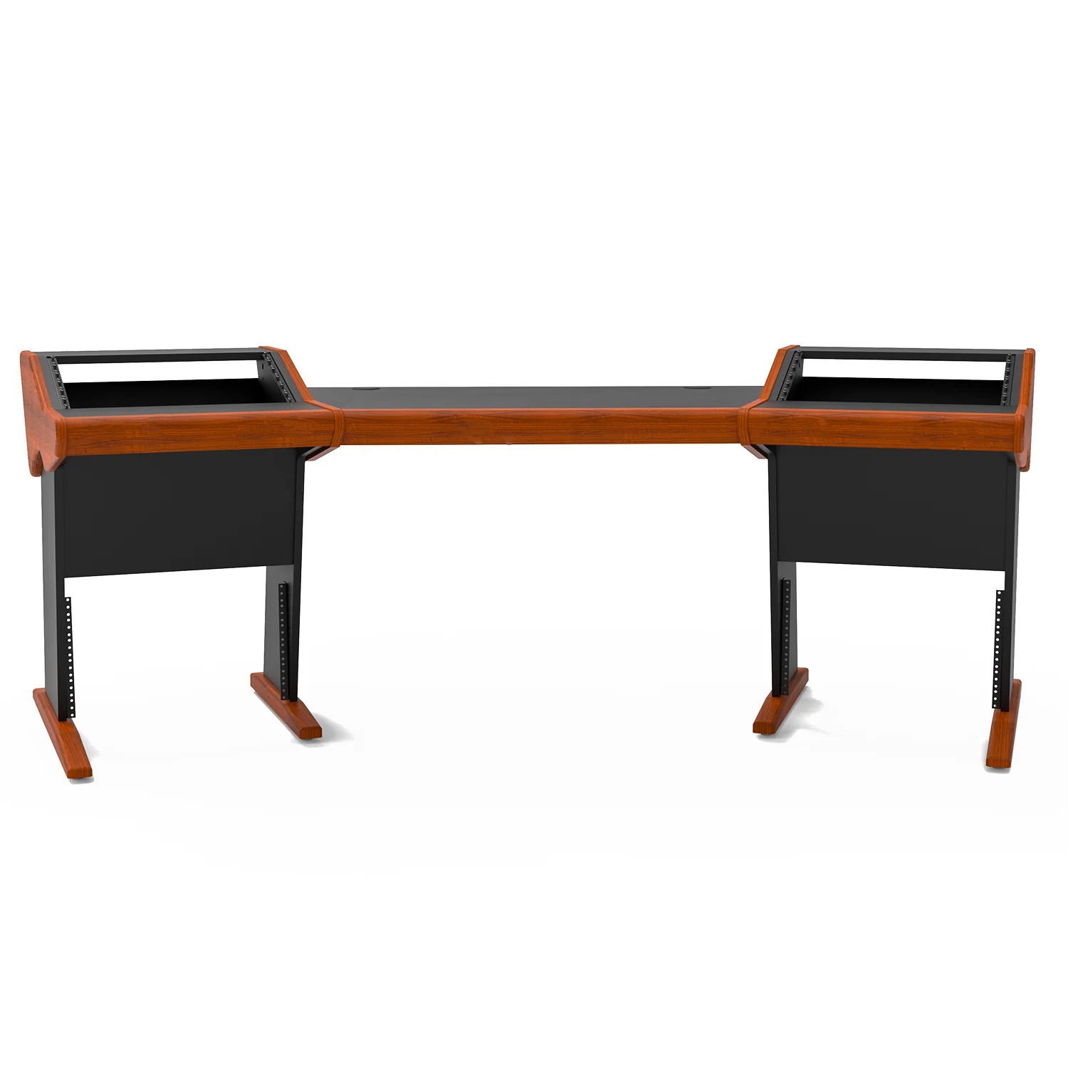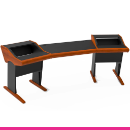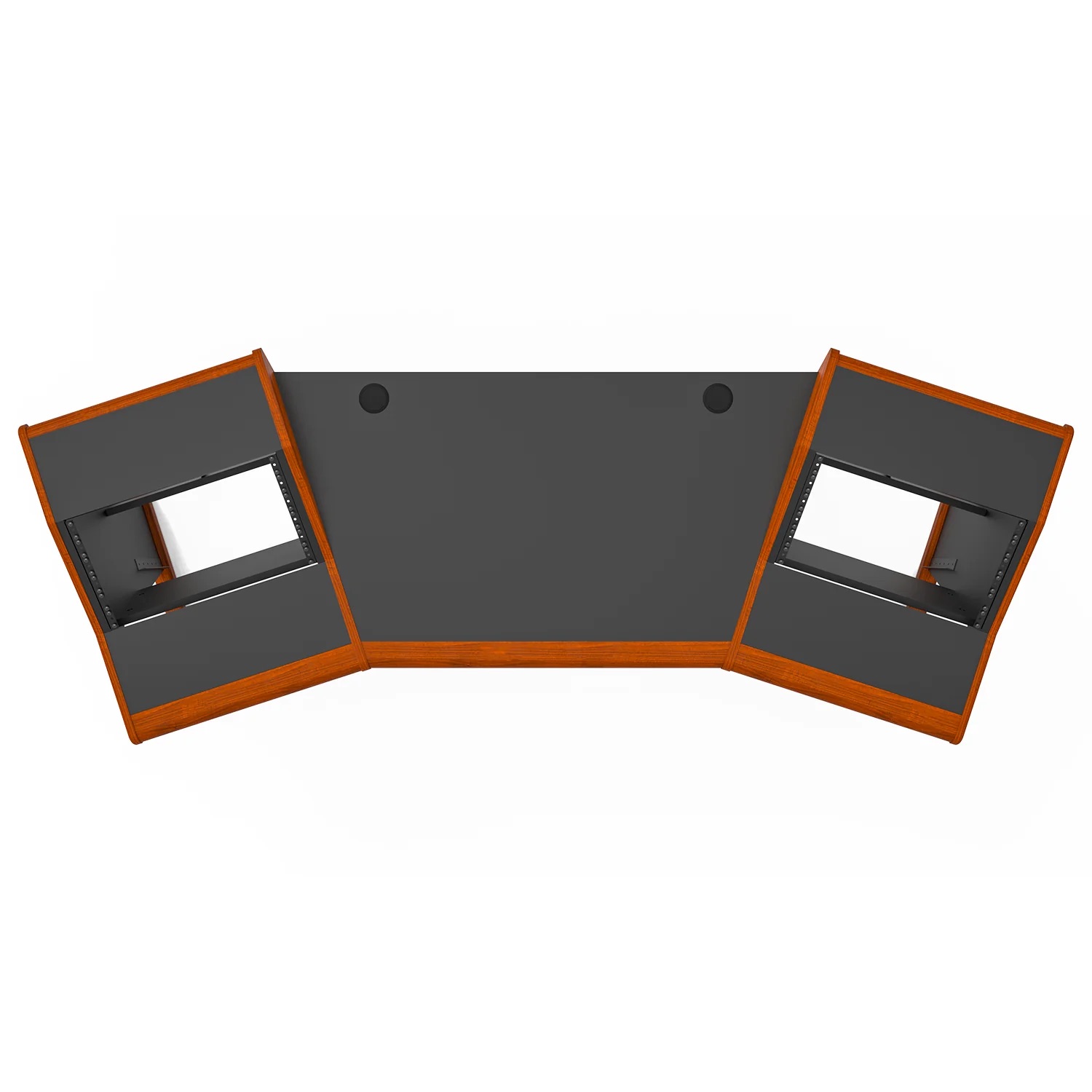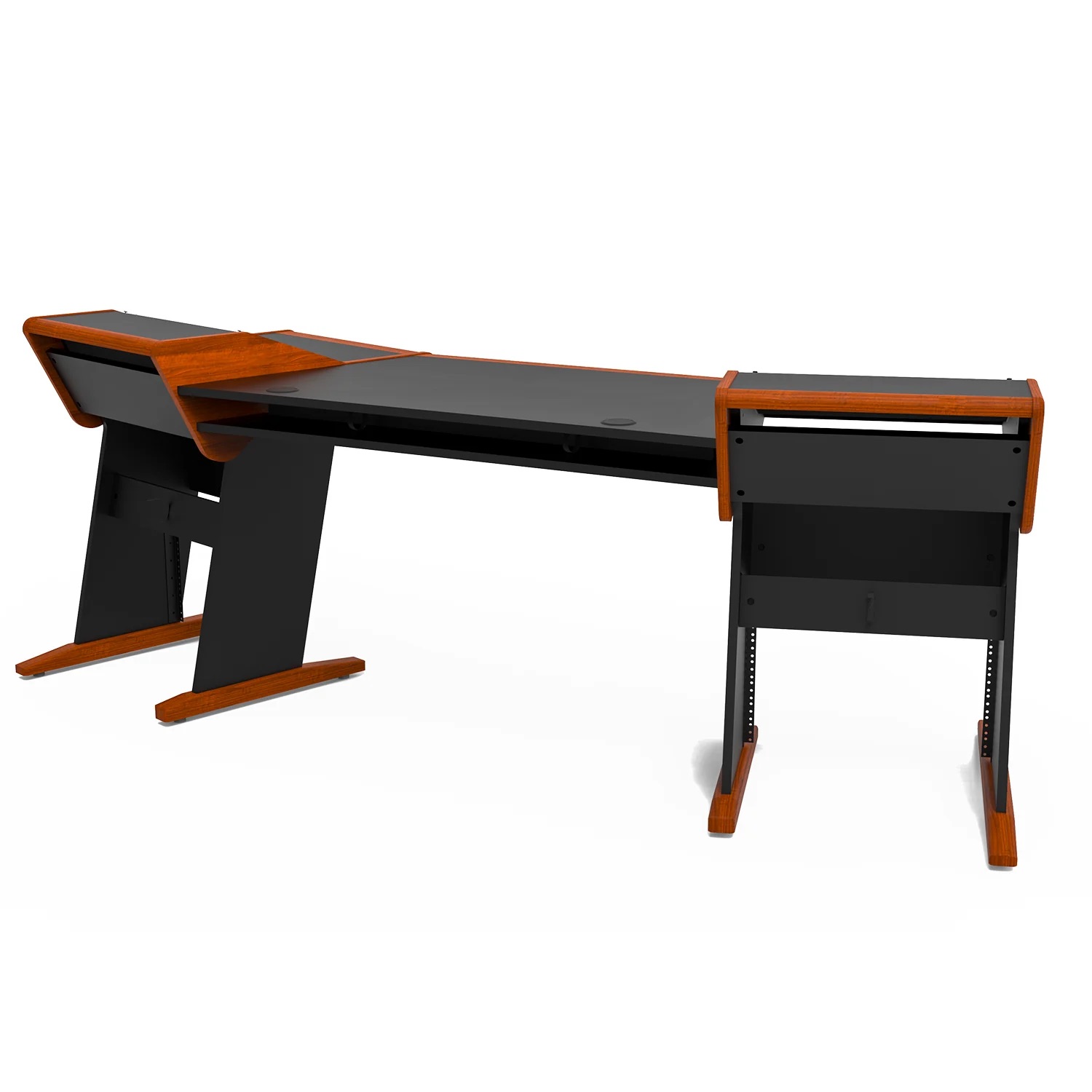 Zaor Onda MKII Angled Cherry – Birou profesional pentru studio, conceput pentru producători, ingineri de sunet și creatori de conținut multimedia. Combină un design ergonomic cu rafturi pentru echipamente și un spațiu central generos de lucru.