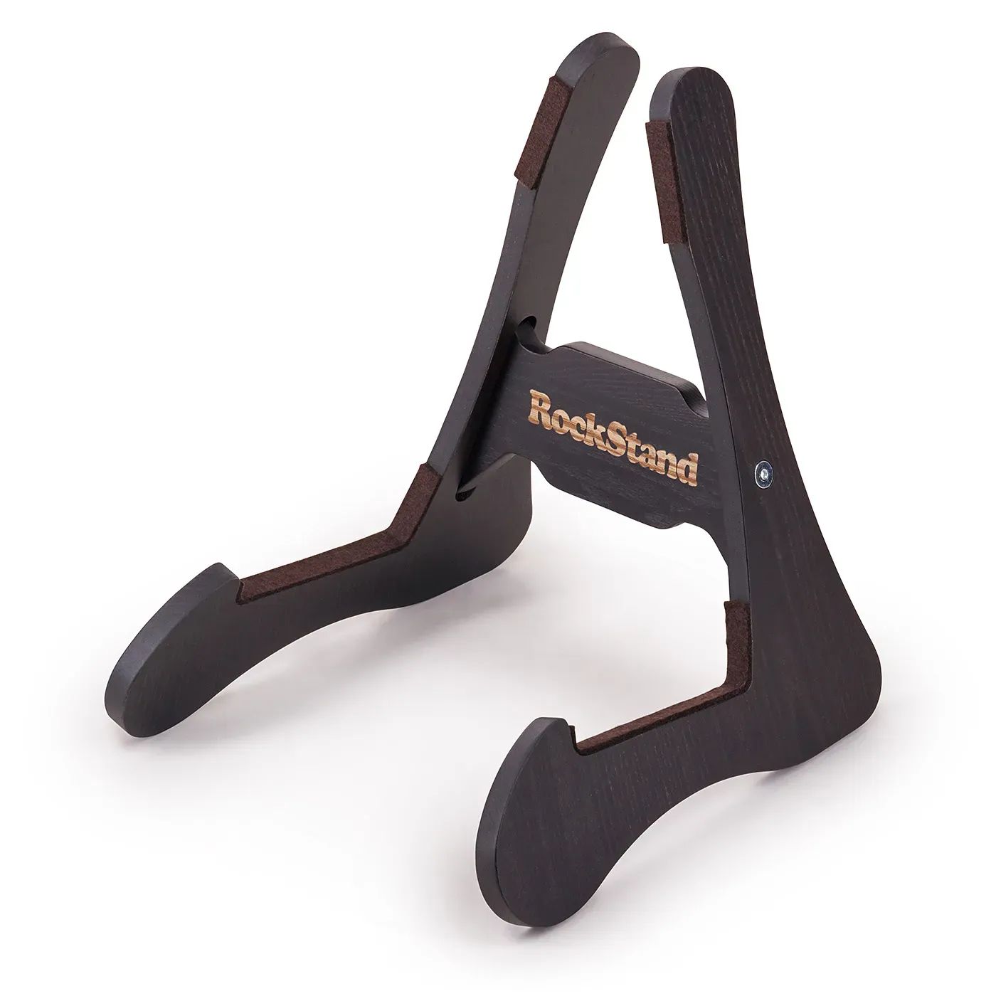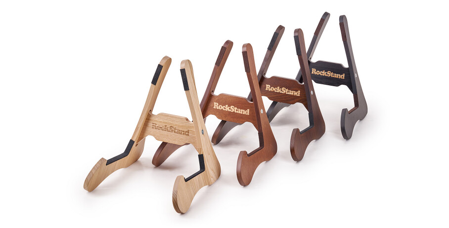 Suporturile de chitară RockStand din placaj, cu design A-frame, se potrivesc perfect cu farmecul rustic al instrumentelor vintage sau boutique. Acestea sunt concepute pentru a oferi instrumentului o poziție stabilă și bine echilibrată. Realizate frasin masiv, sunt disponibile în mai multe finisaje care se integrează armonios în decor, asemenea unei piese de mobilier elegante. Finisajul instrumentului este protejat prin aplicații din fetru sau cauciuc antiderapant în toate punctele de contact cu instrumentul. Designul ușor de asamblat necesită doar două șuruburi și poate fi montat rapid cu ajutorul cheii hexagonale incluse.