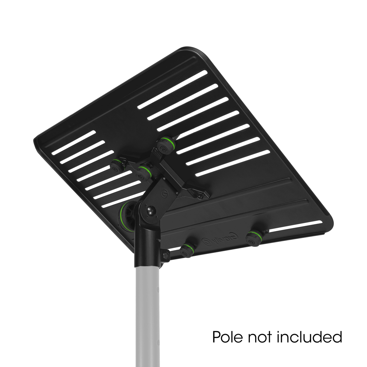 Gravity® LTS TRAY 1 – Suport flexibil de laptop compatibil cu stative și trepiede, ideal pentru scenă, studio, birou sau ședințe foto, suportul asigură fixarea sigură a laptopului, controlerului DJ sau mixerului, menținând echipamentul la îndemână și stabil.