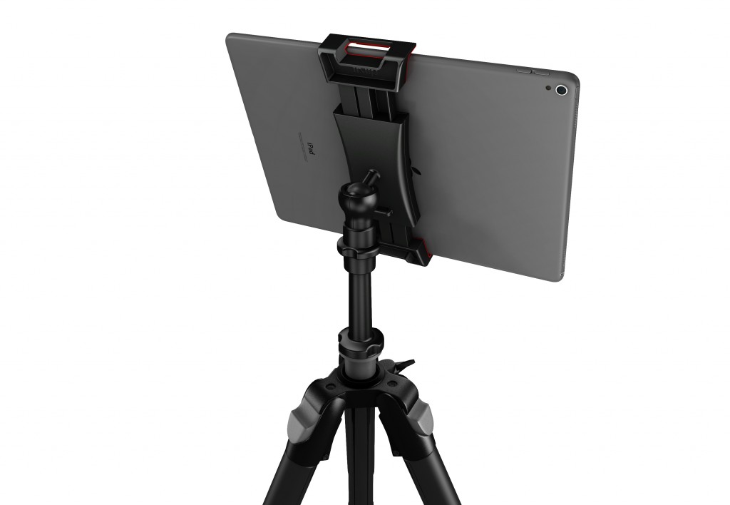 iKlip 3 Video - Suport pentru tablete cu dimensiunile ecranului între 7" - 12.9", atașabil la trepiedul de cameră video, joncțiunea cu bilă permite rotirea în toate direcțiile.