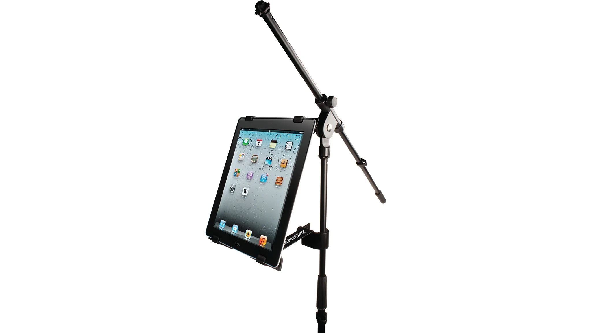 MNT-101 Universal iPad Holder, suport accesibil îți pune muzica, versurile, listele de piese, tabulaturile, contactele la îndemână. Se montează pe stâlpul aproape oricărui suport pentru microfon și ține în siguranță toate iPad-urile, inclusiv iPad mini. Poți ajusta ușor unghiul și axa iPad-ului tău la două puncte diferite. Poți alege să fixezi iPad-ul în vedere peisaj sau portret.