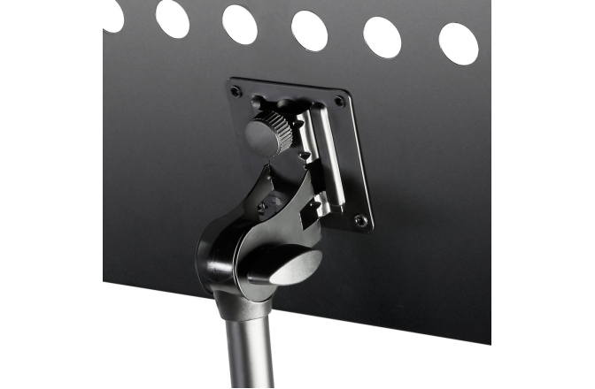 Adam Hall SMS-2 are un suport perforat pentru partituri și o bază pliabilă pentru trepied din oțel rezistent la uzură, cu finisaj rezistent la acoperire cu pulbere neagră. Înălțimea suportului și unghiul de înclinare a biroului sunt complet reglabile pentru a fi utilizate atunci când sunteți așezat sau în picioare. Designul pliabil și tava detașabilă de birou facilitează depozitarea și transportul.