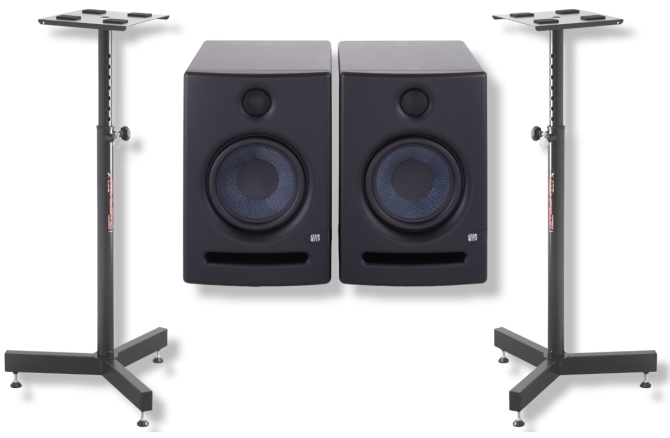 Presonus Eris E5, pereche de monitoare de studio cu difuzor de joase din Kevlar, driver de înalte cu calotă din mătase, bi-amplificat, amplificare clasa AB, controale acustice profesionale, construcţie solidă.