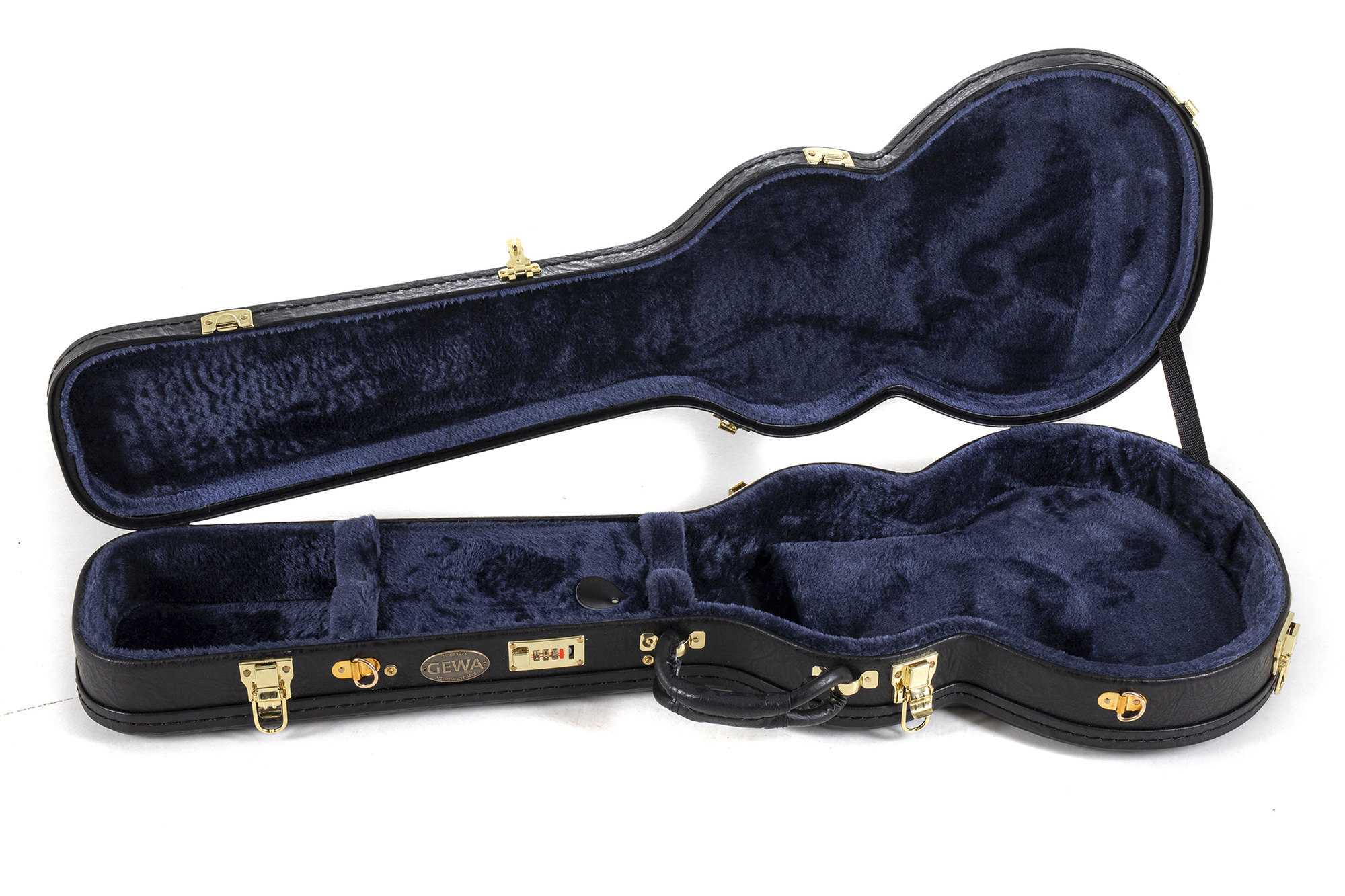Toc din lemn, parte superioară robustă, arcuită, capsată. Închizătoare aurite, 1 închizător cu cod, 2 balamale, 9 picioare metal. Bride metal pentru curea (curea nu este inclusă). Mâner comfortabil, imitație piele sagrin interior pluș albastru, compartiment cu capac pentru accesorii. Logo alamă GEWA.