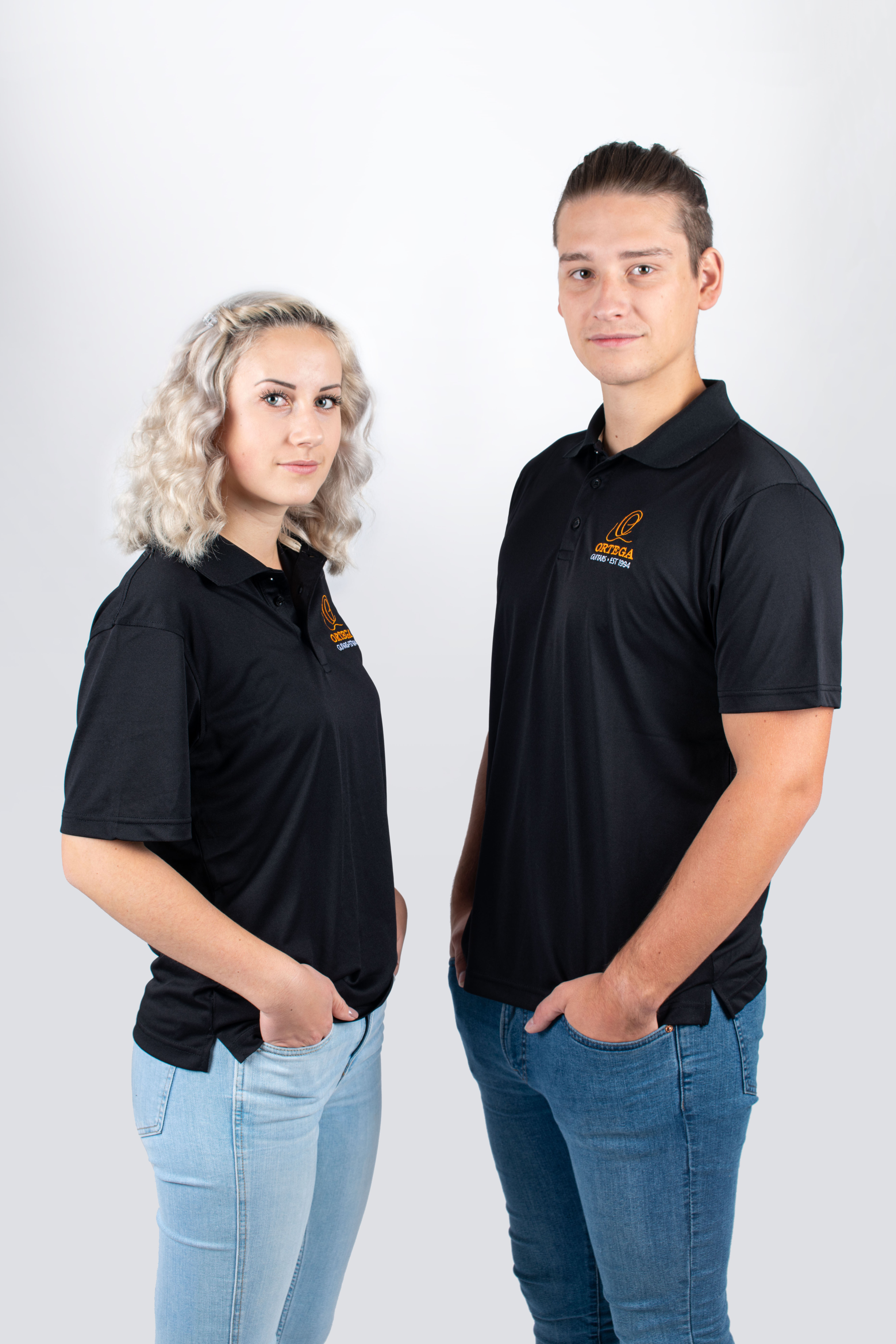 Tricou brodat cu logo Ortega, culoarea neagră.