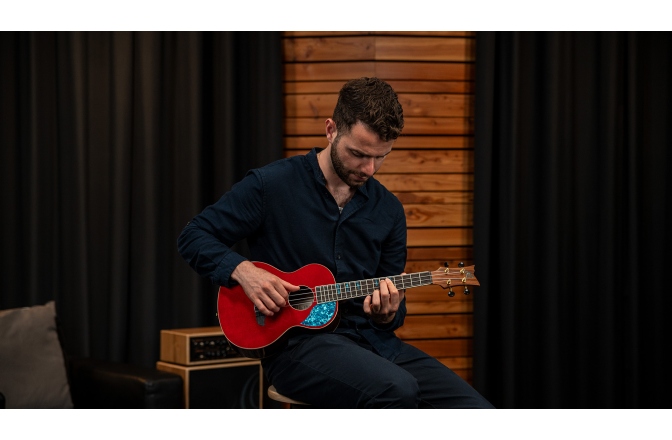 Ukulele Ortega Guitars GHOST SERIES captivează cu vârful lucios izbitor. Blaturile colorate (negru, ocean, roșu pătat și platină) se armonizează frumos cu finisajul lucios din lemn de trandafir din spate și laterale.
