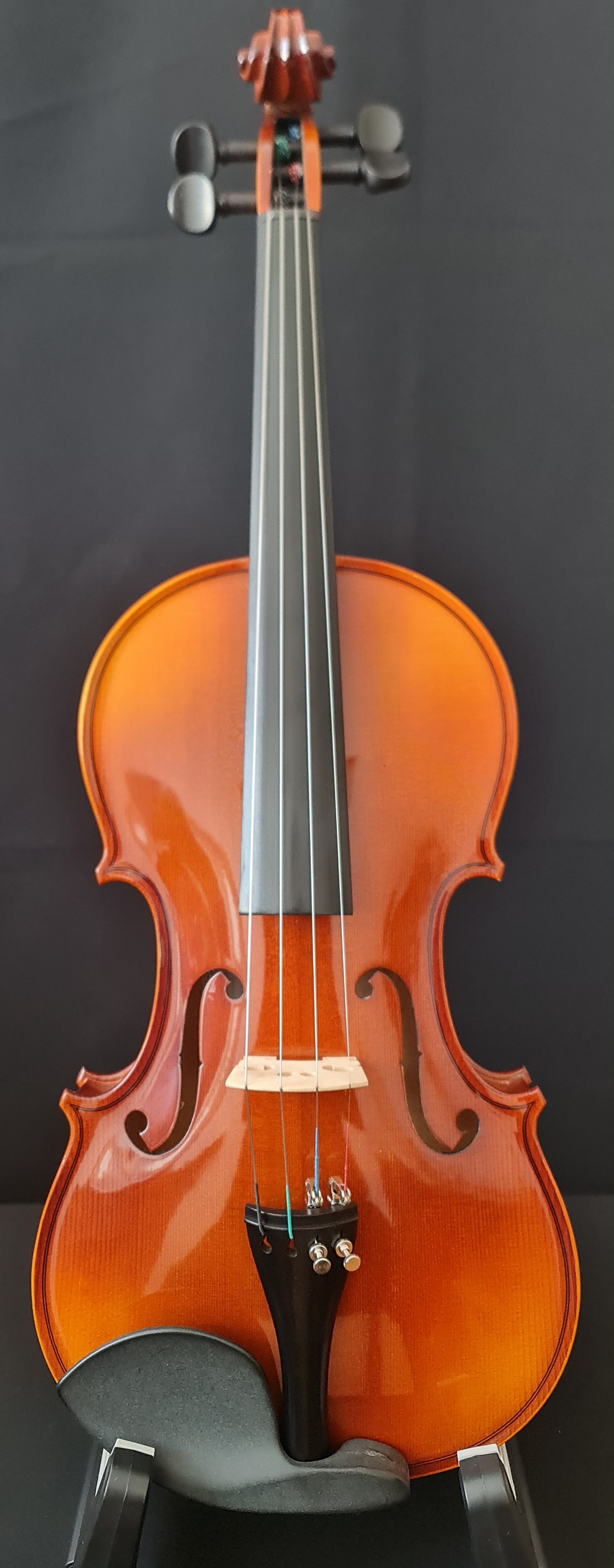 Hora Reghin Avansat Plus - Vioară 4/4 cu fața din molid selecționat, gâtul și spatele din paltin creț atent selecționat. Gama avansat are finisaj cu lac de ulei și se fac astfel de viori în serii limitate de maxim 30-50 de bucăți pe an, în funcție de cum se găsește și se selecționează astfel de paltin rar.