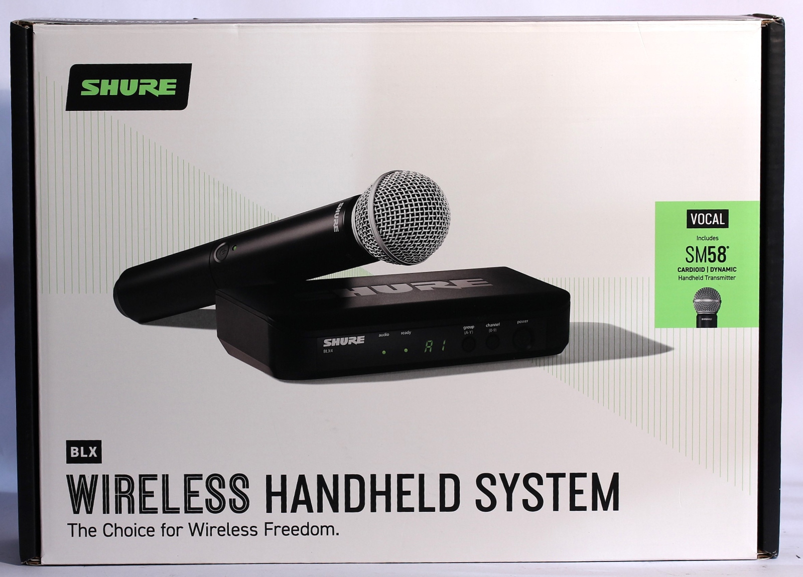 Sistemul este format din transmițătorul de mână BLX2 ce are montată capsula de microfon dinamic SM58 și receptorul BLX4.