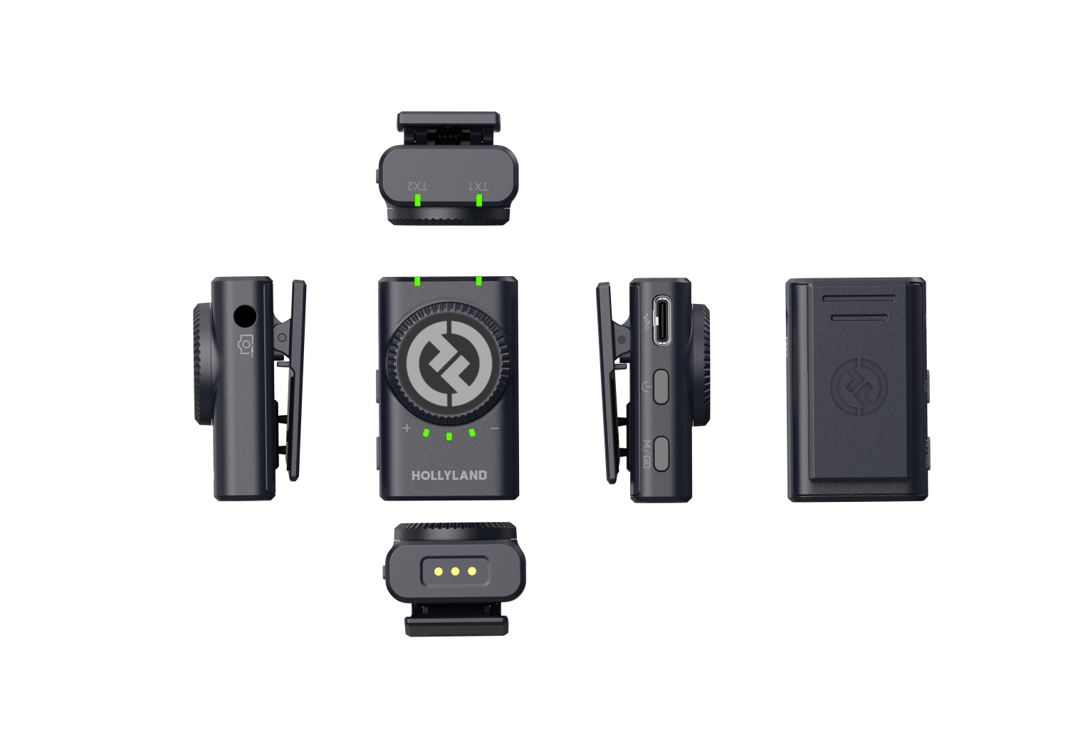 - Sistemul de anulare a zgomotului ambiental oferă o reproducere mai precisă a sunetului în medii zgomotoase. Utilizatorii pot regla cu ușurință nivelul de suprimare pentru a obține cele mai bune rezultate în orice situație. Microfonul utilizează aplicația Hollyland LarkSound care permite actualizarea firmware-ului cu o singură atingere, reglarea volumului și a anulării zgomotului și controlul funcționării în timp real. Desigur, există posibilitatea de a declanșa de la distanță înregistrarea video utilizând dispozitive mobile (apăsați de două ori butonul de anulare a zgomotului), un buton pentru ajustarea rapidă a volumului sau comutarea ușoară între modurile mono și stereo.