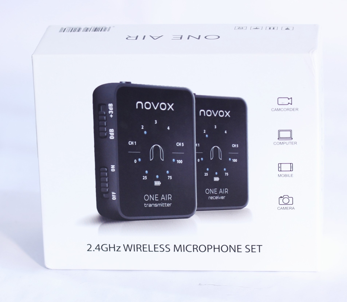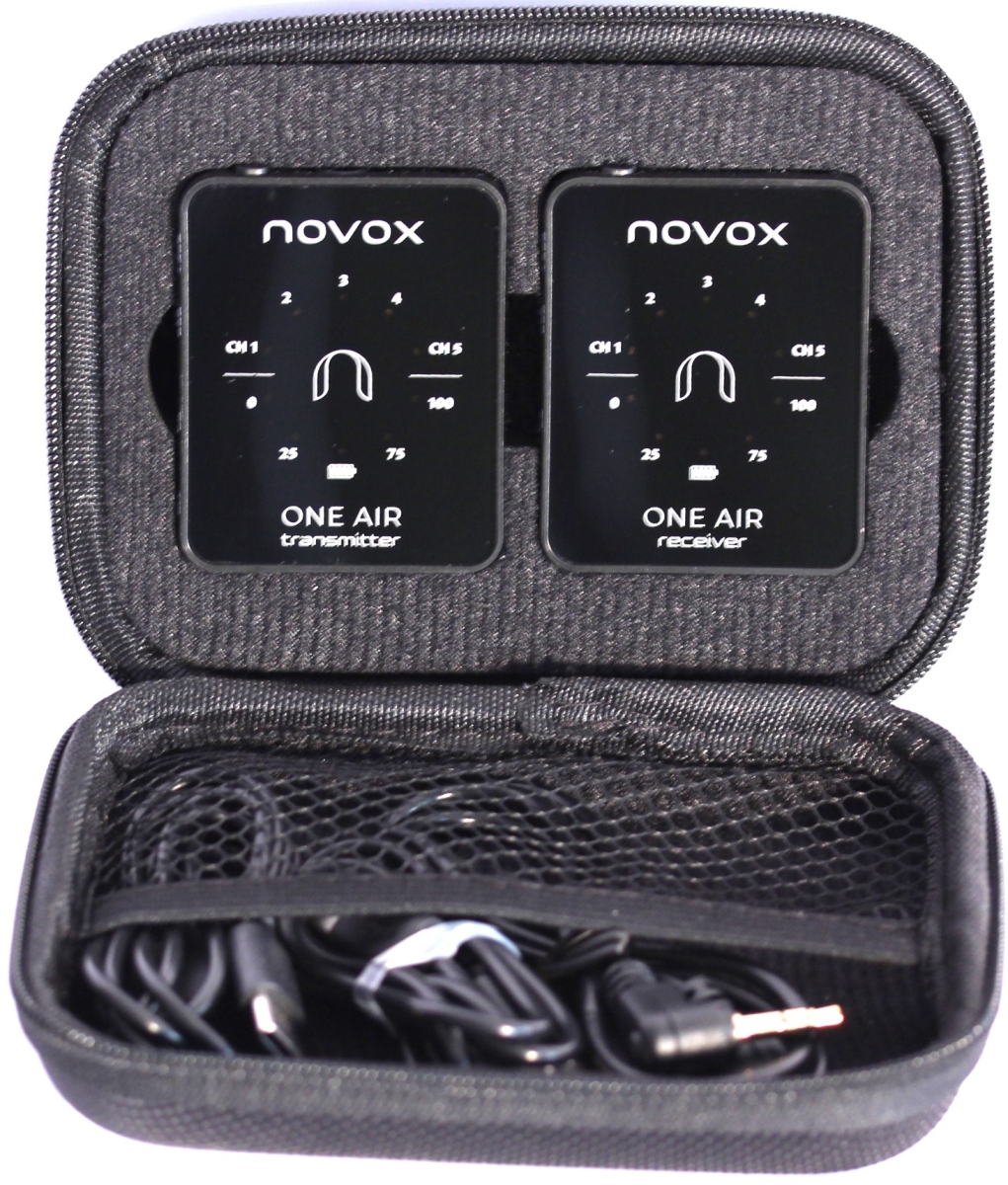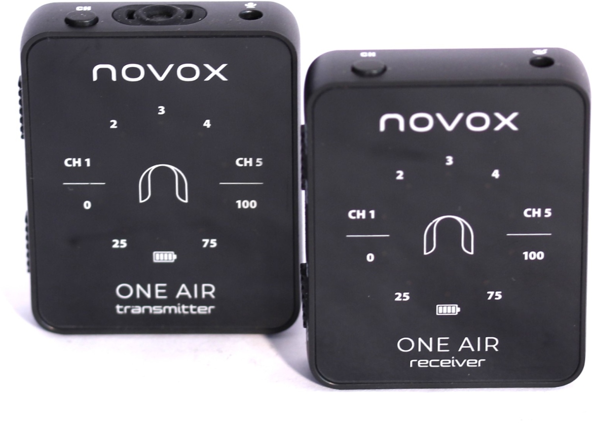 Novox One Air - Sistem Wireless care funcționează în banda de frecvență de 2.4 GHz și care surprinde în același timp prin dimensiunea sa compactă și ușurința de utilizare. Atât microfonul / emițătorul, cât și receptorul cântăresc doar 31 de grame fiecare și arată precum un MP3 Player de dimensiuni mici.
